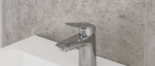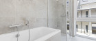 Großformatiges Feinsteinzeug in Bad, WC & Terrasse