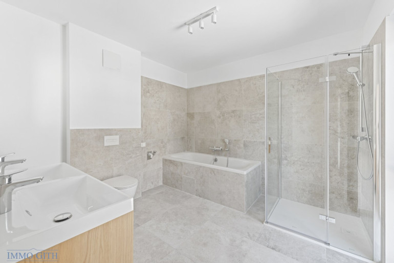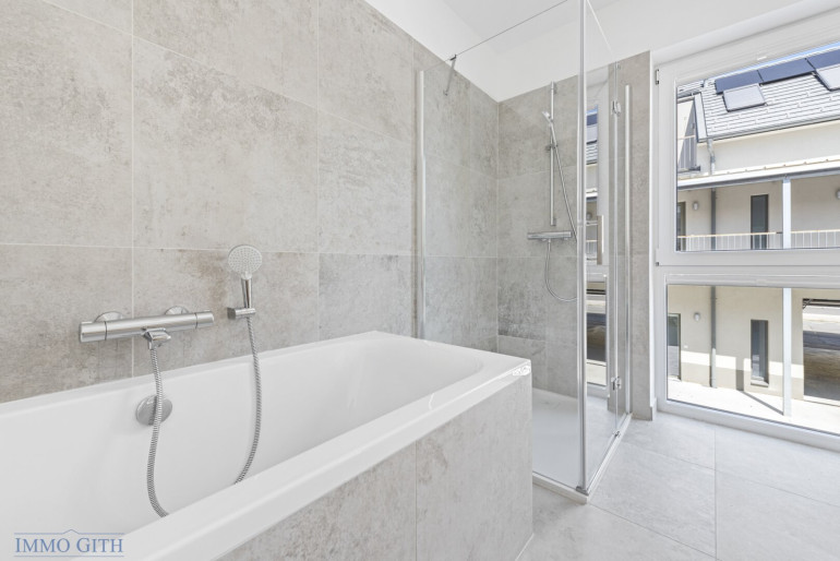 Zwei gut geschnittene Schlafzimmer sowie ein komfortabel ausgestattetes Badezimmer mit Badewanne, WC und moderner Walk-In-Dusche – funktional, hochwertig und ideal für Familie oder Gäste.