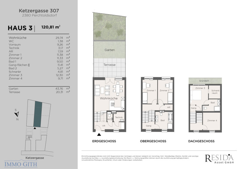 Das rund 121 m² große Townhouse verfügt über 5 Zimmer – bestehend aus einem großzügigen Wohn-/Essbereich und vier Schlafzimmern – und bietet ein durchdachtes Raumkonzept über mehrere Ebenen, klar gegliedert für Alltag, Rückzug und Familienleben.