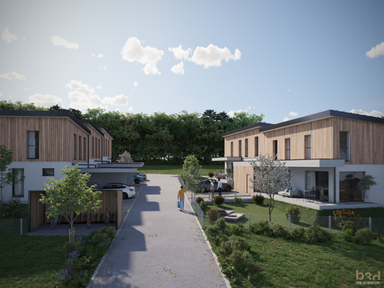 Nußdorf5. In Zell in der Gemeinde Nußdorf am Attersee errichtet die Nu5 Projekt GmbH ein Doppelhaus mit zwei und ein Reihenhaus mit drei Wohneinheiten, wahlweise in belags- oder in schlüsselfertiger Ausführung.