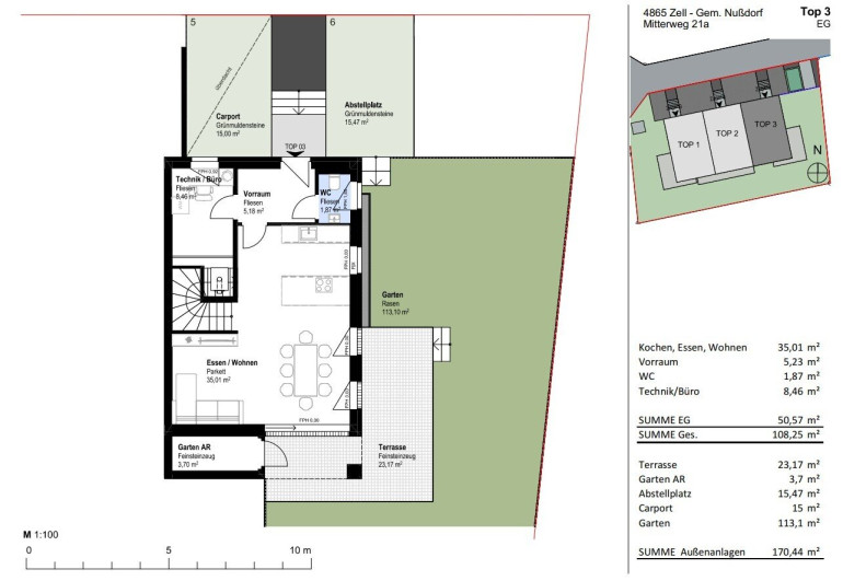 Die von der Gemeinde vorgeschriebenen Infrastrukturkosten (Verkehrsflächenbeitrag, Aufschließung- und Anschlusskosten etc.) sind im Kaufpreis nicht inkludiert, diese werden gesondert verrechnet.