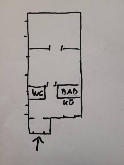 Man betritt die Wohnung über den Vorraum. Geradeaus gelangt man in die Küche. Nach der Küche befinden sich das Badezimmer mit Dusche und das separate WC. Geradeaus gelangt man ins Wohnzimmer und weiter ins Schlafzimmer. Alle Fenster schauen in den ruhigen Innenhof.