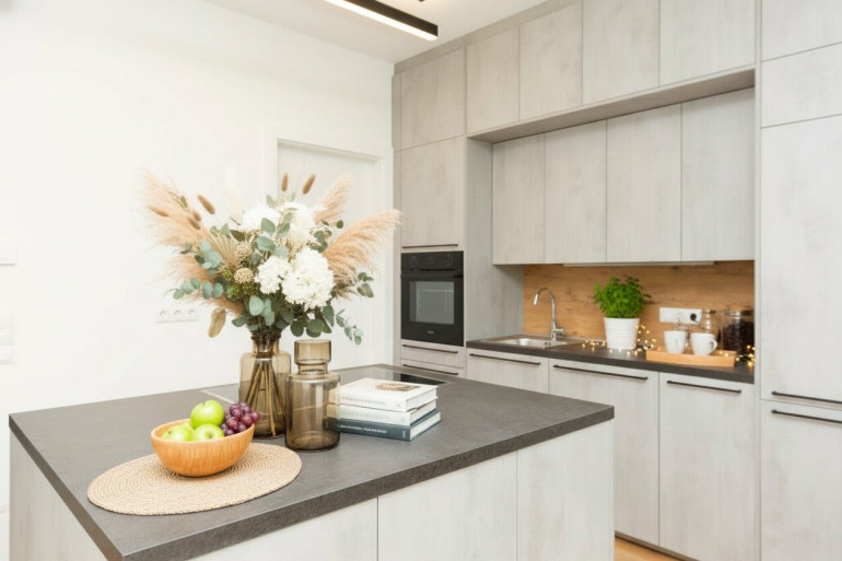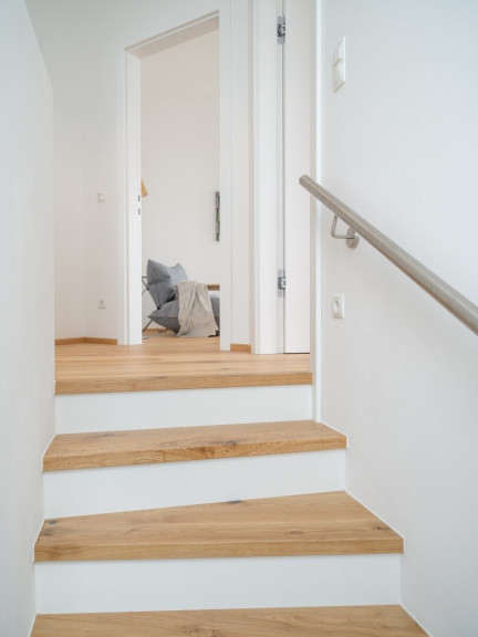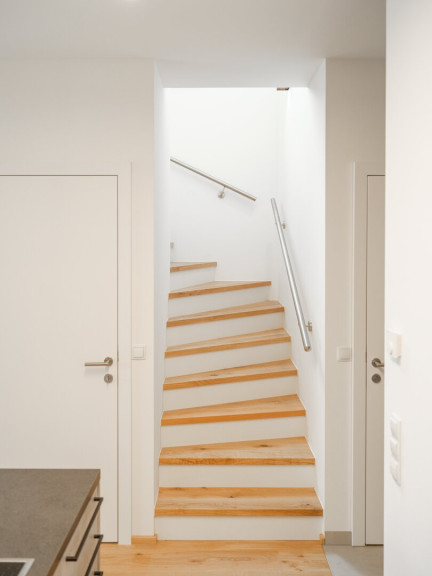 - Erdgeschoss: Lichtdurchflutete Wohn-/Essküche, praktische Vorratskammer, Abstellraum, Garderobe, Gäste-WC und Stauraum unter der Treppe.