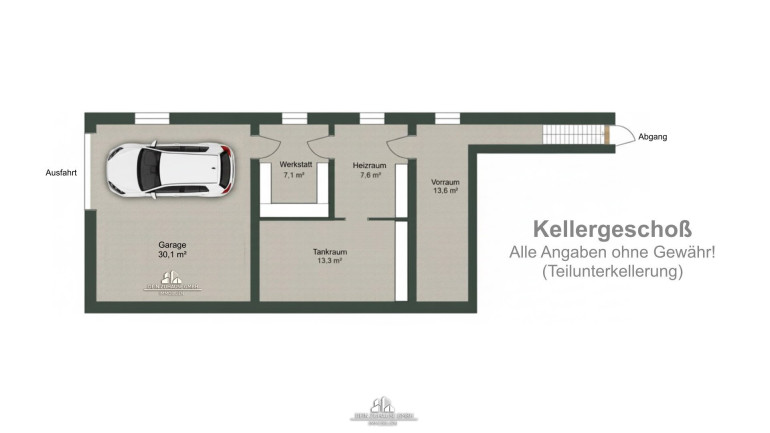 Im Kellergeschoß befinden sich ein Technikraum, der Heizraum (mit Tankraum) und eine weitere Garage - siehe auch Pläne im Anhang