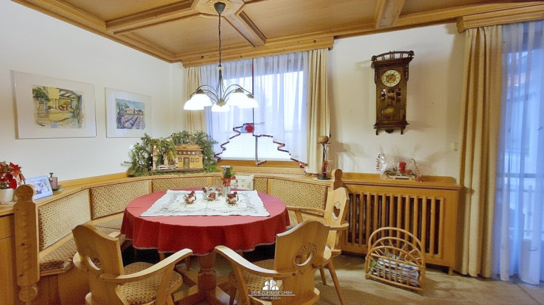 - Wohn- / Esszimmer mit Kaminofen und Ausgang auf Balkon