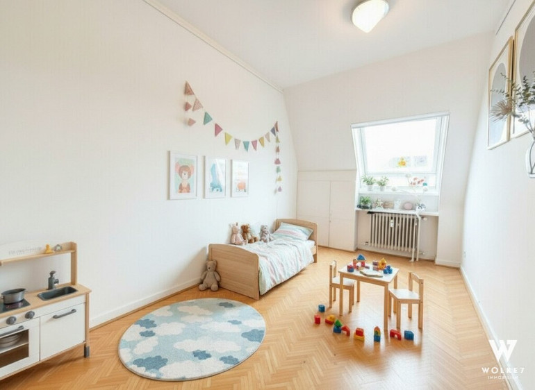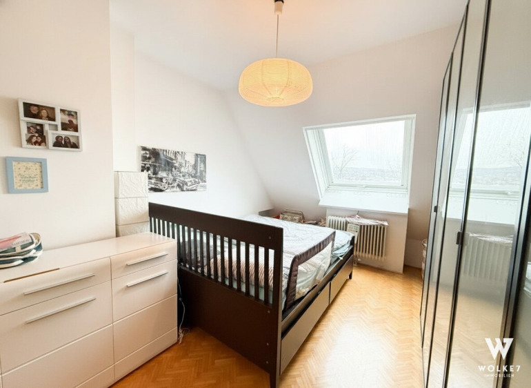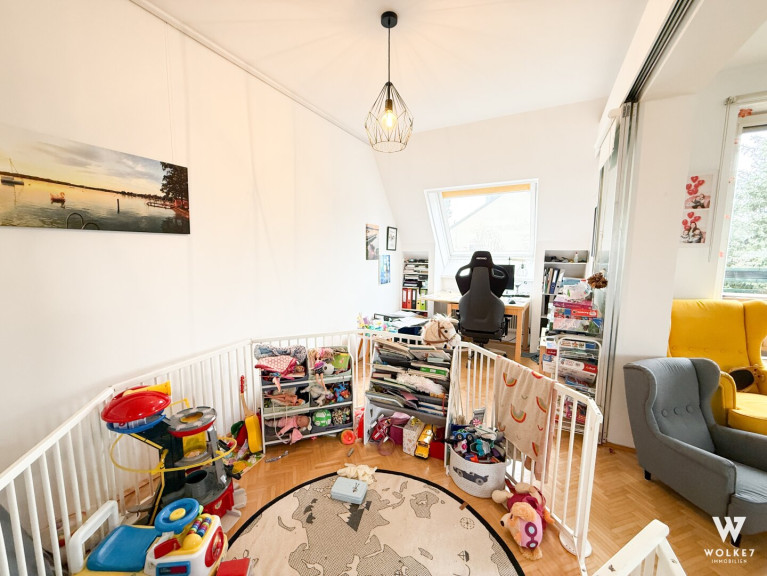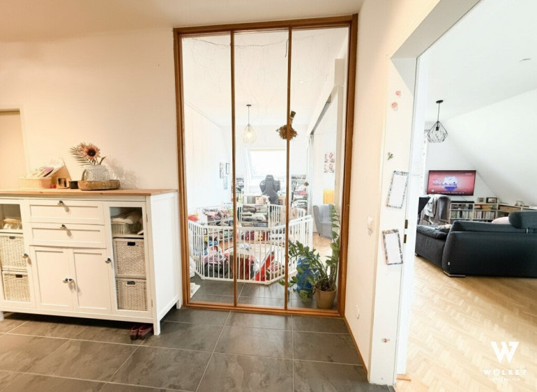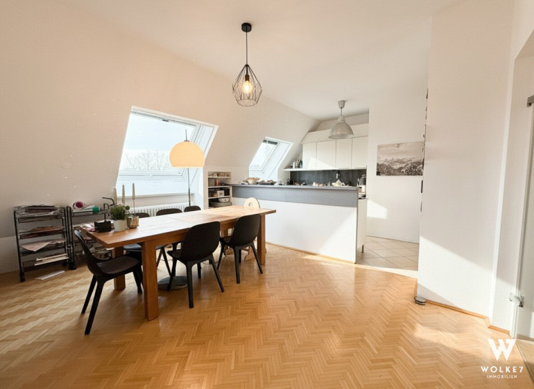 Diese großzügige, lichtdurchflutete Wohnung im Dachgeschoß eines gepflegten Hauses aus 1986 bietet rund 120 m² Wohnfläche sowie einen westseitigen Balkon. Die durchdachte Grundrissgestaltung und zahlreiche Glas-Elemente sorgen für ein besonders freundliches Wohnambiente. Ein besonderes Highlight ist der Gemeinschaftsgarten mit integriertem Spielplatz.