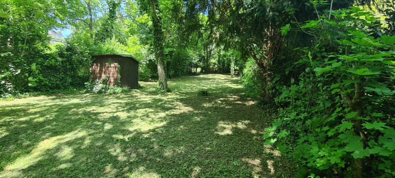 Das Haus steht auf einem langgestreckten Grundstück mit ca. 1.124m², welches sich nach hinten hinaus zieht. Der grüne Garten ist bis zur Grenze durchzogen mit gemischten Baumbestand.