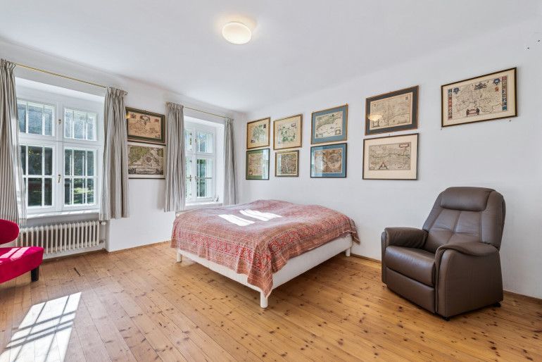 Der Grundaufbau des Hauses gleicht der Bauart eines Dreikanthofes. Von der Eingangsseite ein fast unscheinbares Juwel, öffnet sich nach hinten in U-Form um den rechteckigen Innenhof eine einzigartige Architektur die Zeitgeschichte mit Moderne verbindet. Treten Sie ein in den ersten Eingangsbereich von wo sich der rechte und linke Flügel auf zahlreiche Räumlichkeitenteilt.