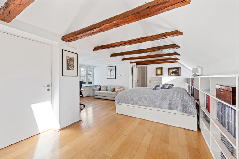 Die Raumhöhen des Obergeschosses liegen in den meisten Räumen bei 2,47m, der Vorraum im Treppenhaus misst ca. 2m, das Duschbad ca. 1,5m und der Wohn-Schlafraum mit Küche weisen eine variierende Raumhöhe von ca. 3,10m - 2,03m auf.