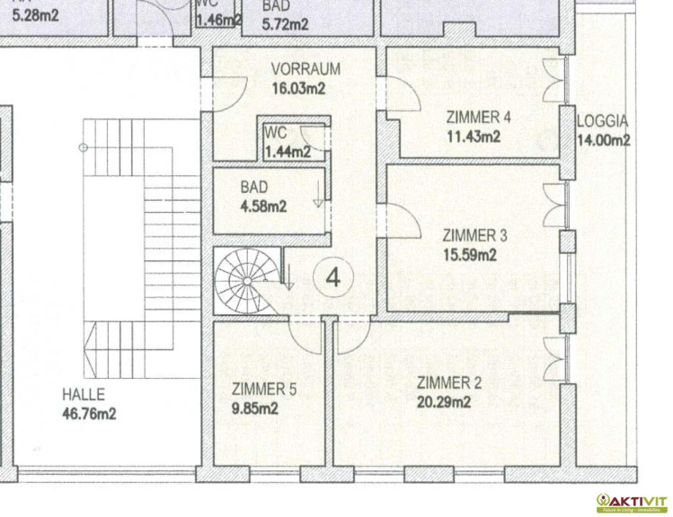 Das Obergeschoss mit ca. 80 m² ist über die interne Wendeltreppe oder separat über das Stiegenhaus zugänglich. Es kann somit eigenständig genutzt oder abgeschlossen werden. Hier befinden sich ein Vorraum, vier Schlafzimmer, ein weiteres Badezimmer sowie ein zweites, separates WC. Highlight dieser Etage ist die Loggia mit rund 14 m², die zusätzlichen Wohnkomfort im Freien bietet.