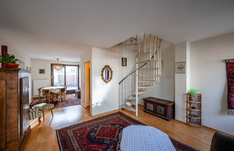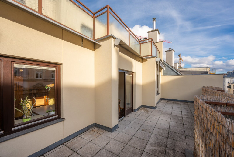 Zum Verkauf steht eine geräumige Dachgeschoss-Maisonette mit ca. 106 m² Wohnfläche und zwei großen, südseitig ausgerichteten Terrassen (je ca. 22 m²) in sehr guter Lage des 9. Bezirks. Die Wohnung befindet sich in einem Neubau aus dem Jahr 1977. Sie wurde stets gut gepflegt, entspricht jedoch nicht mehr den heutigen Standards, was dem neuen Eigentümer die Chance bietet, das neue Zuhause nach eigenen Wünschen zu gestalten. Die Infrastruktur ist hervorragend, alle Geschäfte des täglichen Bedarfs sowie öffentliche Verkehrsmittel sind fußläufig erreichbar.