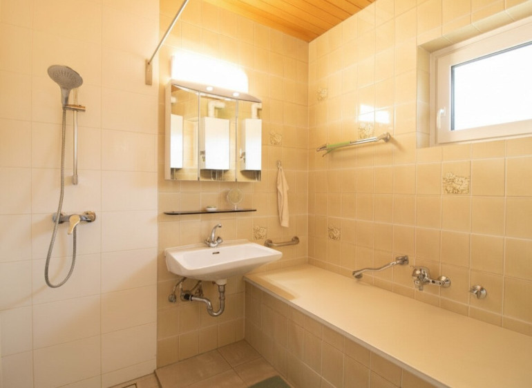 • Badezimmer mit Fenster, Badewanne und Dusche