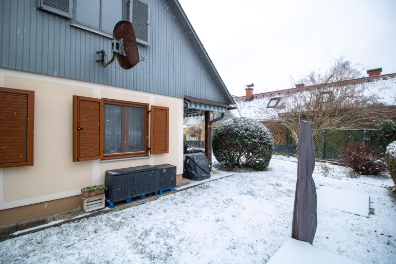 Der lichtdurchflutete Wohnbereich mit direktem Zugang zur Terrasse und zum Garten lädt zum Entspannen ein. Ob gemütliche Stunden im Grünen oder gesellige Abende – hier genießen Sie Ruhe und Privatsphäre. Die moderne Küche fügt sich harmonisch ins Wohnkonzept ein und bietet optimale Voraussetzungen für kulinarische Genüsse.