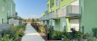 Autofreie Wege zum Spazieren und liebevoll gestaltete Grünflächen laden zum Verweilen ein. Das Auto findet sich versteckt in der Tiefgarage, die natürlich auch E-Tankplätze anbietet. Der multifunktionale Gemeinschaftsraum kann auch als Shared-Office genutzt werden.
