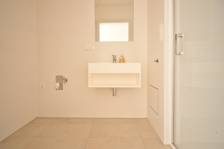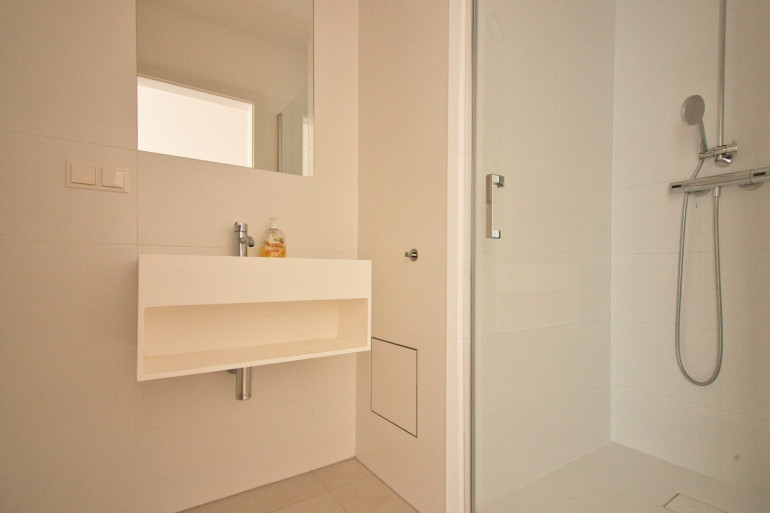 - Badezimmer mit Dusche, Handtuchheizkörper & Waschmaschinenanschluss