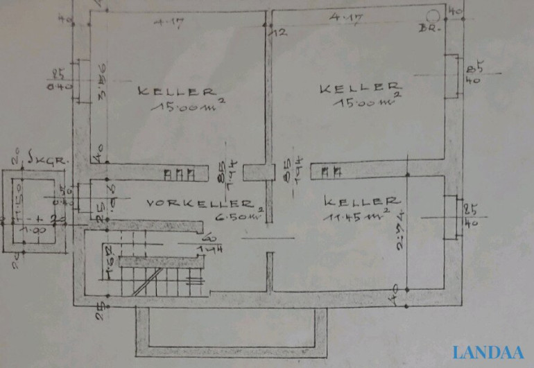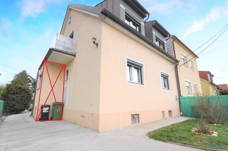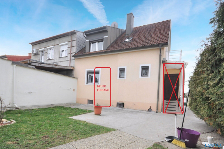 Der hintere Bereich (ca. 400 m²) wird als separates Fahnengrundstück (€ 295.000,–) verkauft. Um die erforderlichen 3 m Fahnenbreite zu schaffen, wird der derzeitige Eingang des Hauses auf die hintere Seite des Hauses verlegt. Diese Umbaumaßnahme sowie sämtliche weiteren Adaptierungen von außen (z. B. neue Stiege/Tür) übernimmt der Verkäufer vollständig auf eigene Kosten. Die komplette Grundstücksteilung, die Eintragung des beidseitigen Fahr- und Leitungsrechts sowie alle baulichen Arbeiten (Eingangsverschiebung inklusive) werden erst durchgeführt, nachdem beide Grundstücke (Vorderhaus + Fahnengrundstück) verkauft sind.