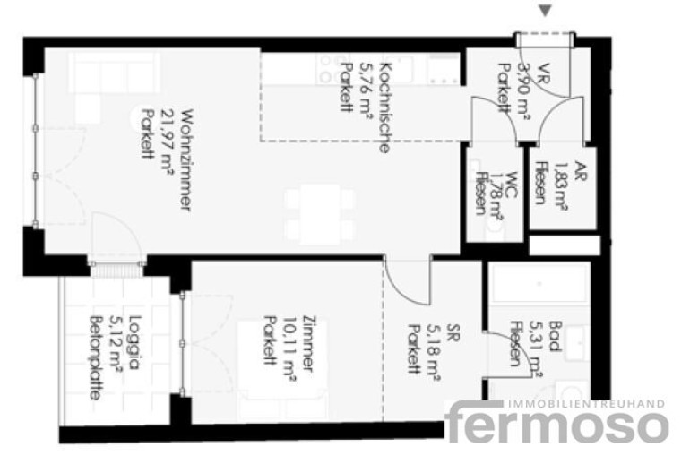 Ein besonderes Highlight dieser Immobilie ist die Loggia, die Ihnen die Möglichkeit bietet, an warmen Tagen frische Luft und einen herrlichen Ausblick zu genießen. Der elegante Parkettboden und die Fußbodenheizung sorgen für ein behagliches Wohnklima und schaffen eine angenehme Atmosphäre in jedem Raum.