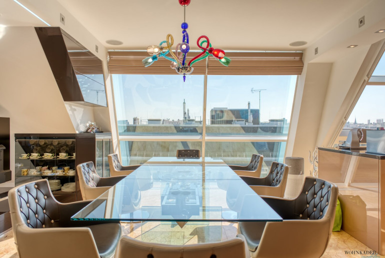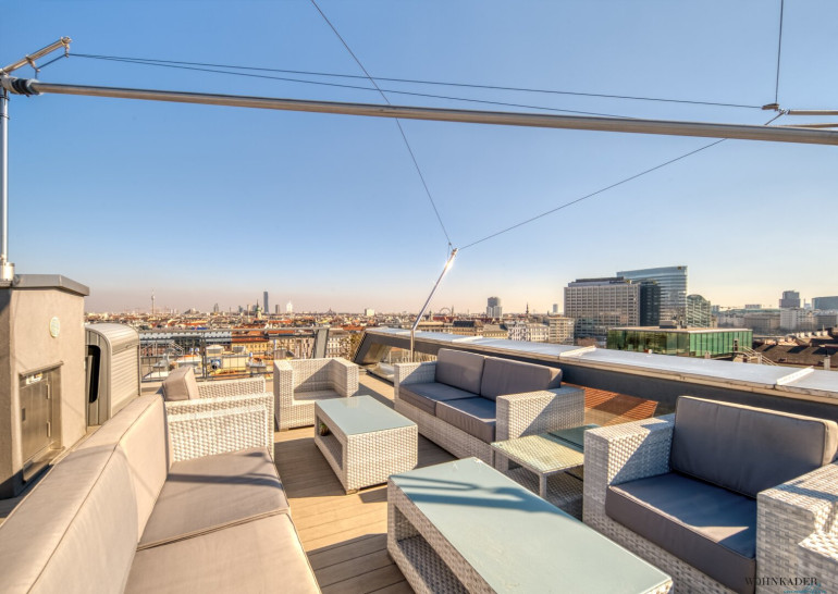 We are delighted to present to you one of the few top properties in Vienna! Located in the heart of Vienna's 1st district, this luxurious penthouse is situated in a beautifully restored 19th-century building. The roof was designed and converted into an architectural masterpiece by a renowned architect in 2004. Two years ago, the apartment underwent a complete renovation, and it now showcases impeccable craftsmanship and design.