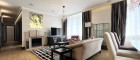 Квартира: Эта квартира была утонченно и роскошно меблирована с использованием высококачественных материалов. Гостиная украшена натуральным камнем, включая оникс и мрамор, а также мраморным камином, который привлекает все внимание. Вся жилая зона освещается великолепными люстрами Murano. Кухня оборудована мрамором и высококачественной бытовой техникой. Огромная люстра Murano висит над мраморным обеденным столом, украшая всё пространство.
