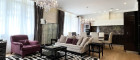 The Apartment: This apartment has been elegantly and extravagantly furnished with the highest quality materials. The living room is adorned with genuine stone, including Onyx and marble, as well as a marble fireplace that captures all attention. The entire living area is illuminated by magnificent Murano chandeliers. The kitchen is equipped with marble and top-of-the-line appliances. A massive Murano chandelier hangs above the marble dining table, enhancing the entire space.