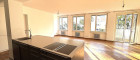Der große Wohn- und Essbereich mit offener Küche bildet das Zentrum der Wohnung. Große Fenster bringen viel Tageslicht herein und bieten einen angenehmen Blick ins Grüne. Die Küche ist mit modernen Geräten ausgestattet und verfügt über eine Kochinsel, die den Wohnbereich optimal ergänzt. Vom Wohnzimmer aus gelangt man auf den ruhigen Balkon, der sich perfekt zum Entspannen im Freien eignet.