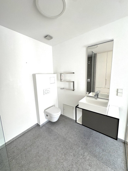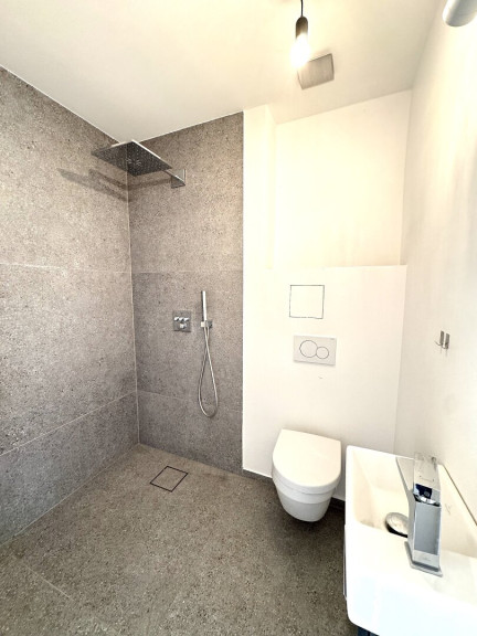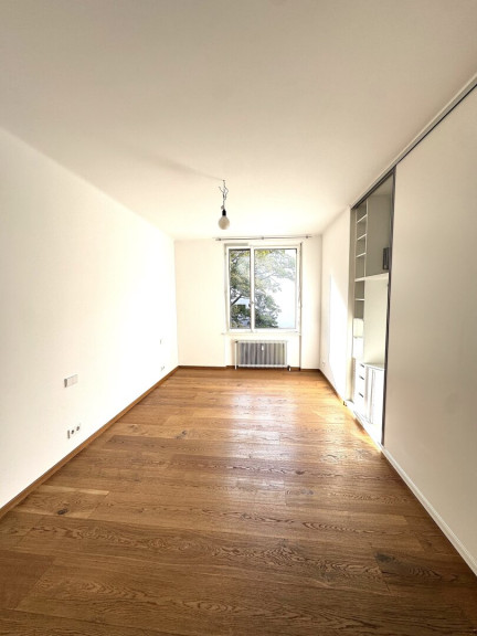 Hochwertige Parkettböden sorgen für eine warme Wohnatmosphäre. Die modernen Bäder sind mit bodengleichen Duschen und großformatigen Fliesen ausgestattet. Maßgefertigte Einbauten bieten zusätzlichen Stauraum. Die Wohnung wird über eine Zentralheizung (Fernwärme) beheizt. Das Haus verfügt über einen Lift. Ein Stellplatz kann auf Wunsch gegen Aufpreis angemietet werden.