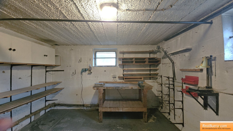 - 1. Kellerraum: Heizraum & Werkstatt (Heizkessel / feste Brennstoffe & Warmwasserspeicher)