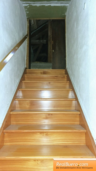 - Treppenaufgang zum (nicht ausgebauten) Dachboden