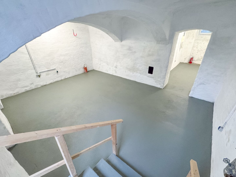 - einem 32 m2 großen Raum mit der Treppe zur Straße
