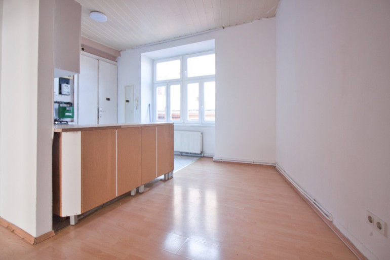 Diese 2-Zimmer-Wohnung befindet sich in einem klassischen Altbau im 1. Stock OHNE Lift. Aktuell verfügt die Wohnung über einen Eingangsbereich mit Küche und Platz für einen Esstisch und über ein großzügiges Wohn-Schlafzimmer. Das Bad ist mit einer Dusche und einem WC ausgestattet.
