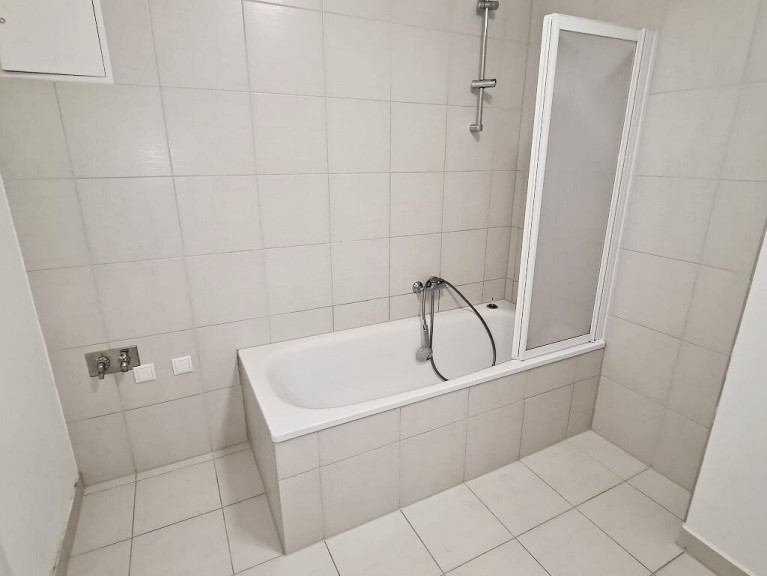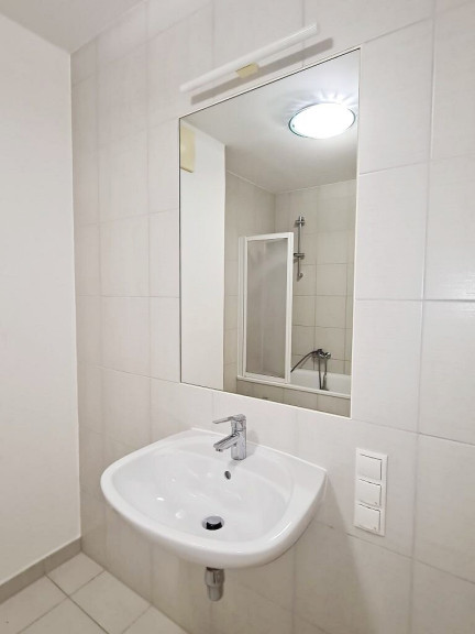 + Badezimmer mit Badewanne, Waschtisch und Waschmaschinenanschluss