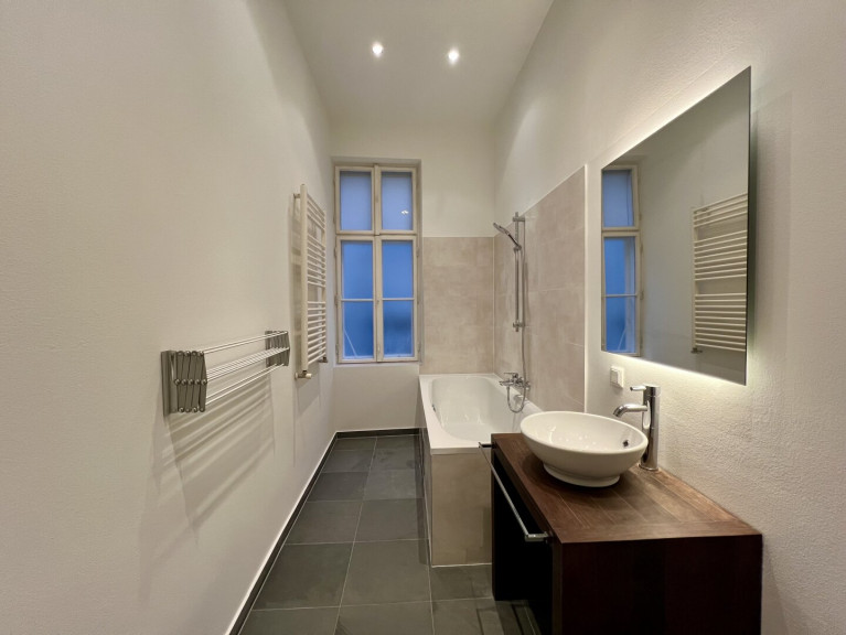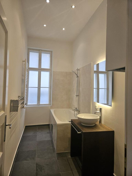 Ein weiteres Highlight der Wohnung ist das moderne Badezimmer. Es verfügt über eine Badewanne, in der Sie nach einem langen Tag entspannen können, sowie ein Fenster, das für ausreichend Tageslicht sorgt. Die Etagenheizung, die mit Gas betrieben wird, sorgt für wohlige Wärme in den kälteren Monaten.