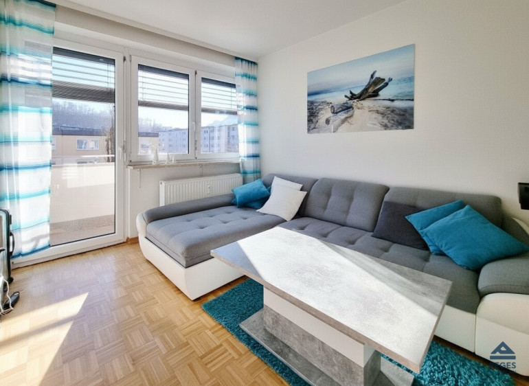 Die Wohnung mit einem Flächenausmaß von ca. 45 m² liegt im 5. Obergeschoss des Hauses (obersten Stockwerk - mit Lift) und befindet sich in einem gepflegten Zustand – separate zeitgemäße Küche, Bad mit Wanne, etc. Die Wohnräume sind mit einem Parketboden ausgestattet, die anderen Bereich mit Fliesen versehen. Eine sehr gute räumliche Aufteilung ist ebenfalls gegeben – alle Räumlichkeiten sind vom Vorraum aus begehbar – und der südlich ausgerichtete, sonnige Balkon eröffnet einen herrlichen Ausblick auf die Umgebung und das Bergpanorama. Für Stauraum sorgt das zugeordnete Kellerabteil.