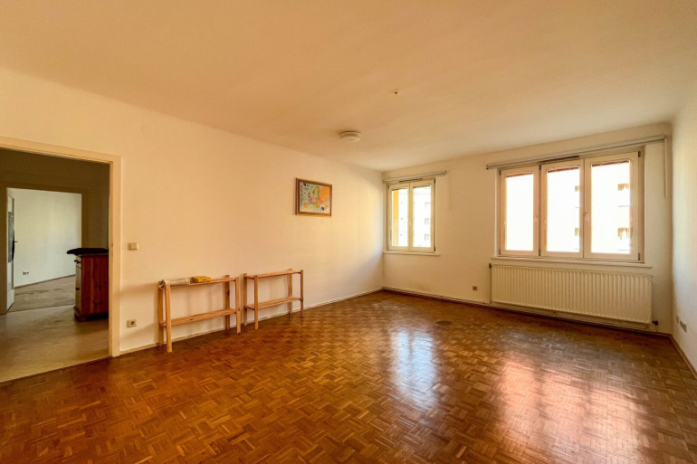 Alle Räume sind zentral vom Vorraum getrennt begehbar, was die Wohnung besonders vielseitig nutzbar macht – ideal sowohl für Paare, Familien als auch für eine Wohngemeinschaft. Zur Verfügung stehen zwei große Zimmer, die flexibel als Wohn-, Schlaf- oder Arbeitszimmer genutzt werden können. Die Küche ist funktional ausgestattet, das Badezimmer verfügt über eine Badewanne und einen Waschmaschinenanschluss, ergänzt durch ein separates WC.