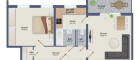 Die Raumaufteilung ist funktional und gut durchdacht: Über den Vorraum mit praktischer Abstellkammer gelangt man in das Badezimmer mit Dusche und Waschmaschinenanschluss sowie in das separate WC. Das helle Wohnzimmer mit separater Küche bietet direkten Zugang zur Loggia und schafft eine angenehme Wohnatmosphäre. Ergänzt wird das Raumangebot durch ein ruhiges Schlafzimmer.