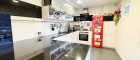 In den Räumen befindet sich ein fugenloser Epoxidharzboden. Dieser ist sehr widerstandsfähig, leicht zu reinigen und eignet sich ideal für Wohn- und Arbeitsbereiche.