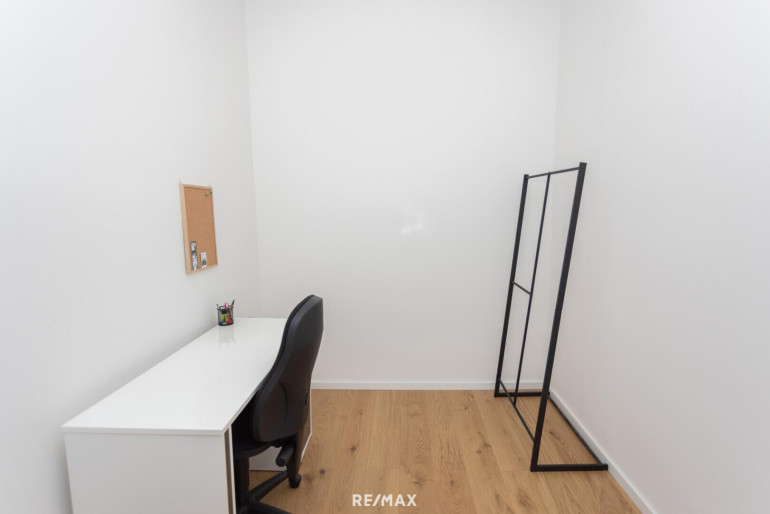 Aus dem Wohnzimmer gelangen Sie über einen Flur in ein weiteres Zimmer und das Bad mit Dusche und WC.