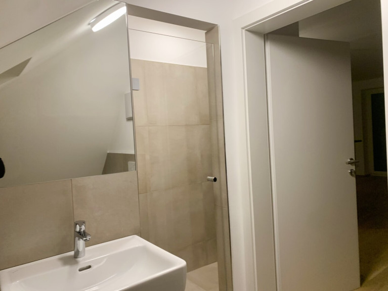 - Bad: mit Fenster, Dusche, Waschtisch, Toilette und Waschmaschinenanschluss
