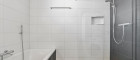 - Modernes Badezimmer mit Badewanne und Dusche, Waschmaschinenanschluss und separatem WC
