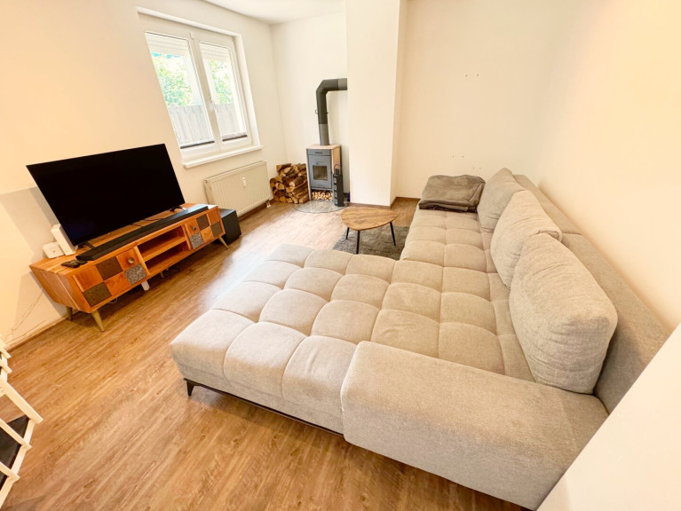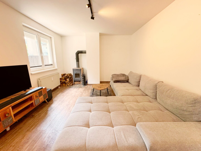 Heizung: Fernwärme + Holzofen im Wohnzimmer