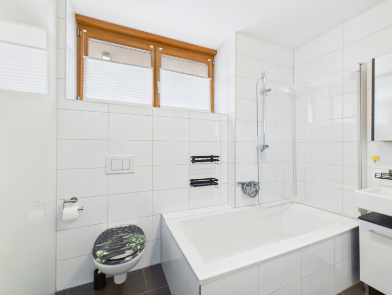 Das Badezimmer mit Fenster und Badewanne bietet Ihnen den perfekten Rückzugsort, um nach einem langen Tag zu entspannen. Zudem stehen Ihnen zwei WCs zur Verfügung, was den Alltag besonders praktisch gestaltet.
