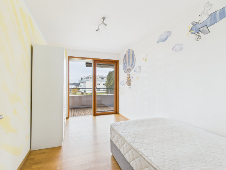 Die Kombination aus Fliesen und Parkett sowie die Holz-Alu-Fenster sorgt für eine angenehme Atmosphäre und ein modernes Wohngefühl. Die Fußbodenheizung garantiert Ihnen wohltuende Wärme an kalten Tagen und rundet den Wohnkomfort perfekt ab.