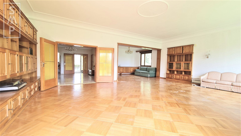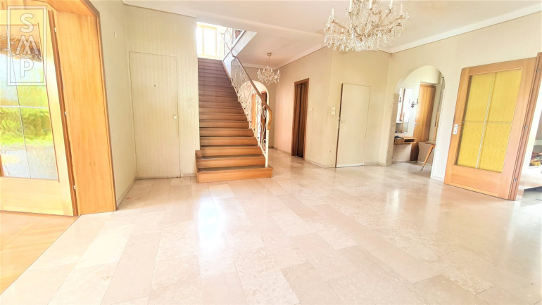 EG: Beim Betreten der Villa gelangt man zuerst in das großzügig angelegte, 30m² große Entrée. Dieses erschließt zentral die weiteren Räumlichkeiten. Durch die Raumhöhe von 3 Meter wirkt das gesamte Erdgeschoß besonders großzügig und repräsentativ. Der Wohnsalon umfasst knapp 70m² und eröffnet einen traumhaften Blick in den Garten. Hinzu kommen die Küche und 3 weitere Zimmer mit Flächen von jeweils 12m² - 18m². 1 Bad und 2 WCs befinden sich ebenfalls auf dieser Ebene.