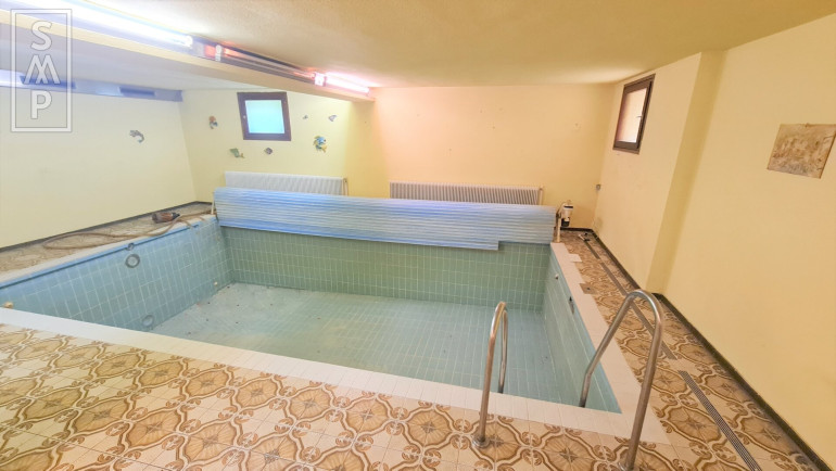 KG: Der Keller ist trocken und weitestgehend, natürlich über Oberlichten belichtet. Er umfasst eine Fläche von rund 190m² und beinhaltet ein Indoor Pool sowie 5 weitere Räume. Vom Keller gelangt man auch in die 30m² große Garage, welche Platz für 2 Autos bietet.