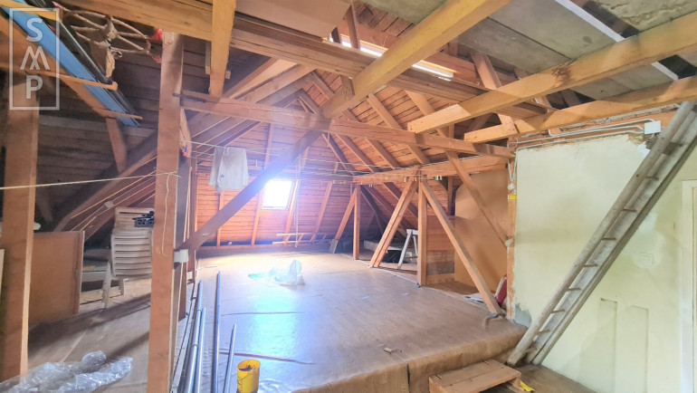 DG: Das Dachgeschoß gliedert sich in einen ausgebauten und in einen unausgebauten Teil, der aber aufgrund der guten Substanz leicht adaptiert werden kann. Der ausgebaute Bereich umfasst ca. 80m², von denen rund 55m² in Form von 2 Zimmern samt Bad und WC sehr gut nutzbar sind.