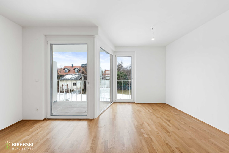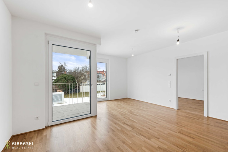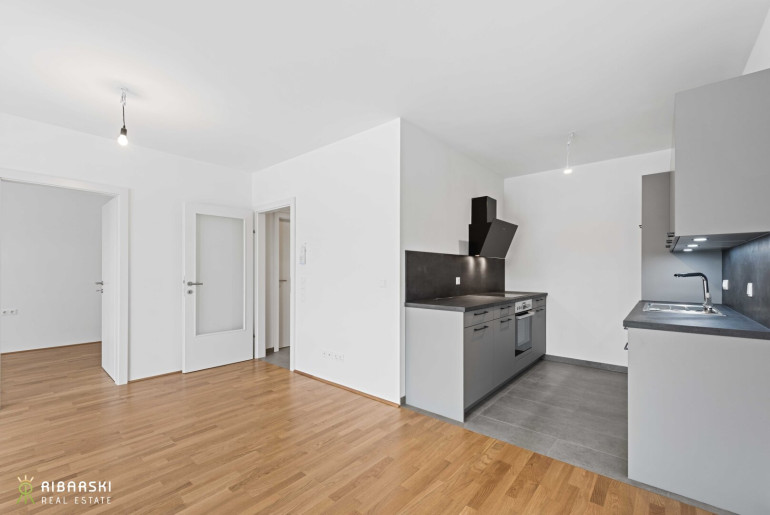 Die angebotene Wohnung bietet Ihnen zwei gut geschnittene, sehr helle Wohnräume, einen Abstellraum, ein Badezimmer mit Dusche und ein separates WC. Eine elegante Einbauküche ist bereits vor Ort. Das Highlight der Wohnung ist zweifelsohne die extravagante Glasfront gegen Westen ausgerichtet. Genießen Sie die Abendsonne auf Ihrer gemütlichen Loggia und den Freiblick Richtung Rax und Schneeberg in Ihrer top modernen Neubauwohnung. Haben Sie Gäste, Kinder oder möchten Sie einfach entspannen, eignet sich dazu der großzügig angelegte Gemeinschaftsgarten.