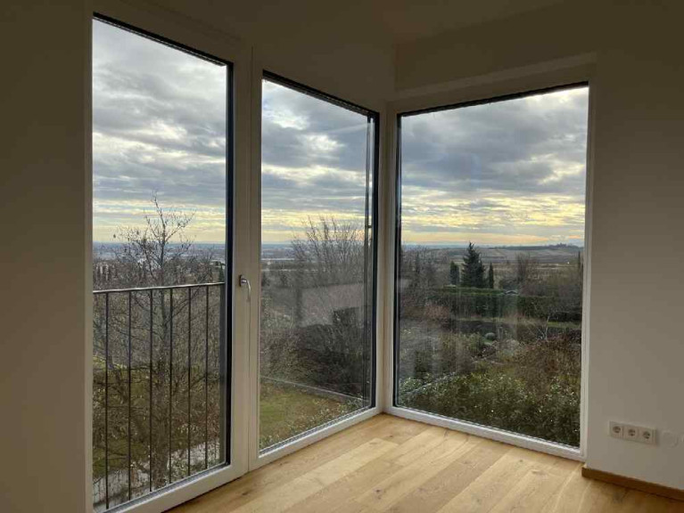 Verbaut wurden Fenster aus Holz bzw. Holz-Alu, innen weiß beschichtet sowie elektrisch betriebene Raffstores.