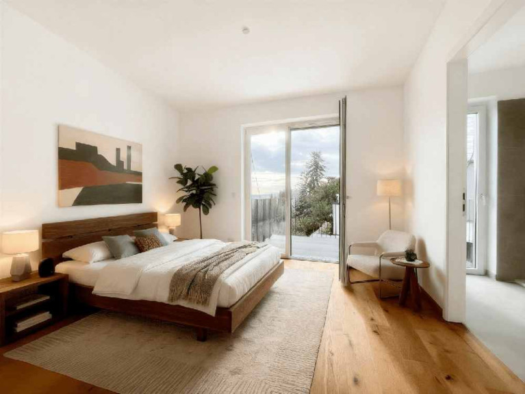 So versorgt eine zentrale Pelletsanlage die Fußbodenheizung sowie die Warmwasseraufbereitung und ein elektrisch betriebener Handtuchheizkörper im Bad liefert zusätzliche Wärme. Für die warme Jahreszeit wird in einzelnen Wohneinheiten die Vorbereitung zur Klimatisierung bzw. eine Vollklimatisierung angeboten.
