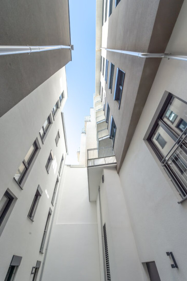 Bei dem Gebäude handelt es sich um ein aus zwei Bauteilen bestehendes Wohnhaus. Der eine Bauteil ist völlig ruhig in der Luftbadgasse, der andere Bauteil in der Gumpendorferstraße gelegen und bietet einen tollen Ausblick auf das Haus des Meeres und die umliegenden Gebäude. Beide Bauteile verfügen über einen Lift, der von der Tiefgarage bis zu den Dachgeschossen führt, weshalb das Gebäude komplett barrierefrei zu begehen ist.