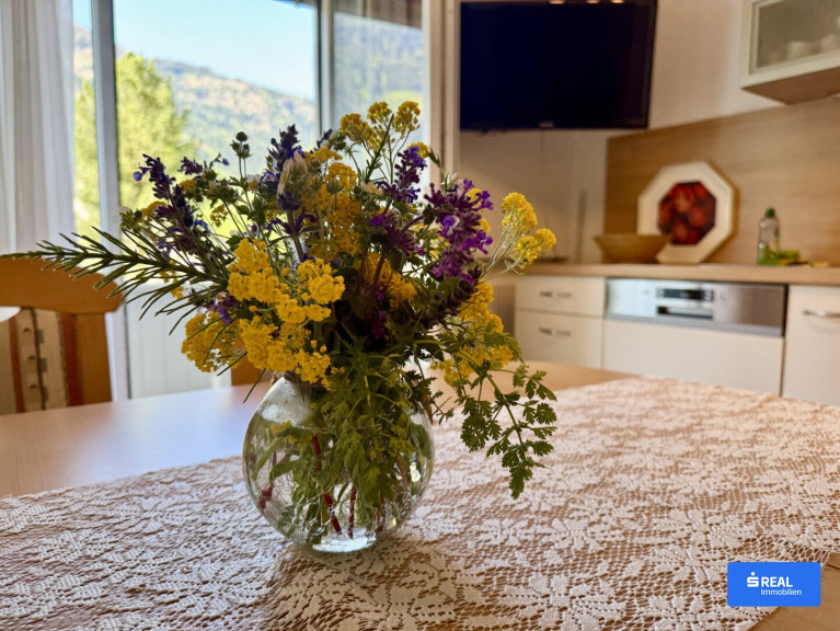 Mit viel Liebe zum Detail gepflegt und vollständig möbliert, verbindet diese Immobilie traditionellen Charme mit praktischem Komfort. Sonnenverwöhnte Balkone, eine große Westterrasse und ein idyllischer Garten mit eigenem Brunnen schaffen Rückzugsorte für ruhige Stunden im Grünen.